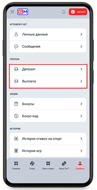 - Профиль — личный кабинет с настройками, информацией о бонусах, статистикой матчей и контактами службы поддержки.
