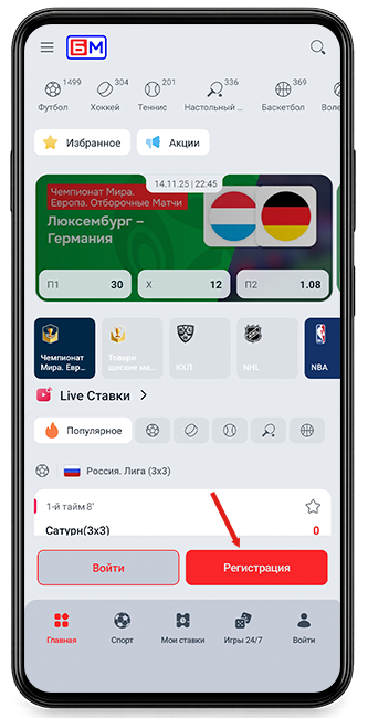 После установки приложения нужно создать аккаунт, если вы ещё не регистрировались в системе букмекера. Для этого откройте приложение и нажмите кнопку «Регистрация» на главном экране.