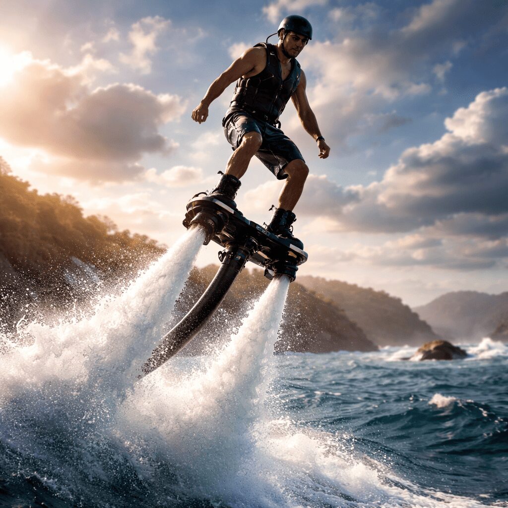 - Флайборд — доска с ботинками и соплами для полётов над водой.