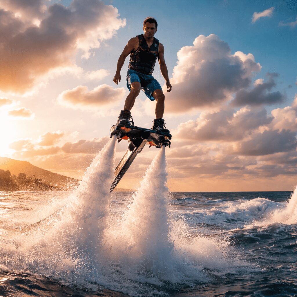 Гидрофлайт — это полёты над водой на реактивной струе, когда насос гидроцикла подаёт воду по шлангу к соплам под доской или ранцем. Для кого-то это экстремальный спорт с трюками, для большинства — яркий аттракцион с контролируемой высотой и работой инструктора.