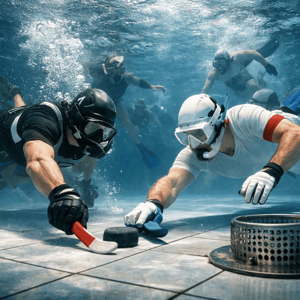 Подводный хоккей объединяет элементы хоккея, плавания и фридайвинга. Игра идёт на дне бассейна, без акваланга, с короткой клюшкой и тяжёлой шайбой, поэтому важны не только сила и техника, но и умение работать под водой в команде.