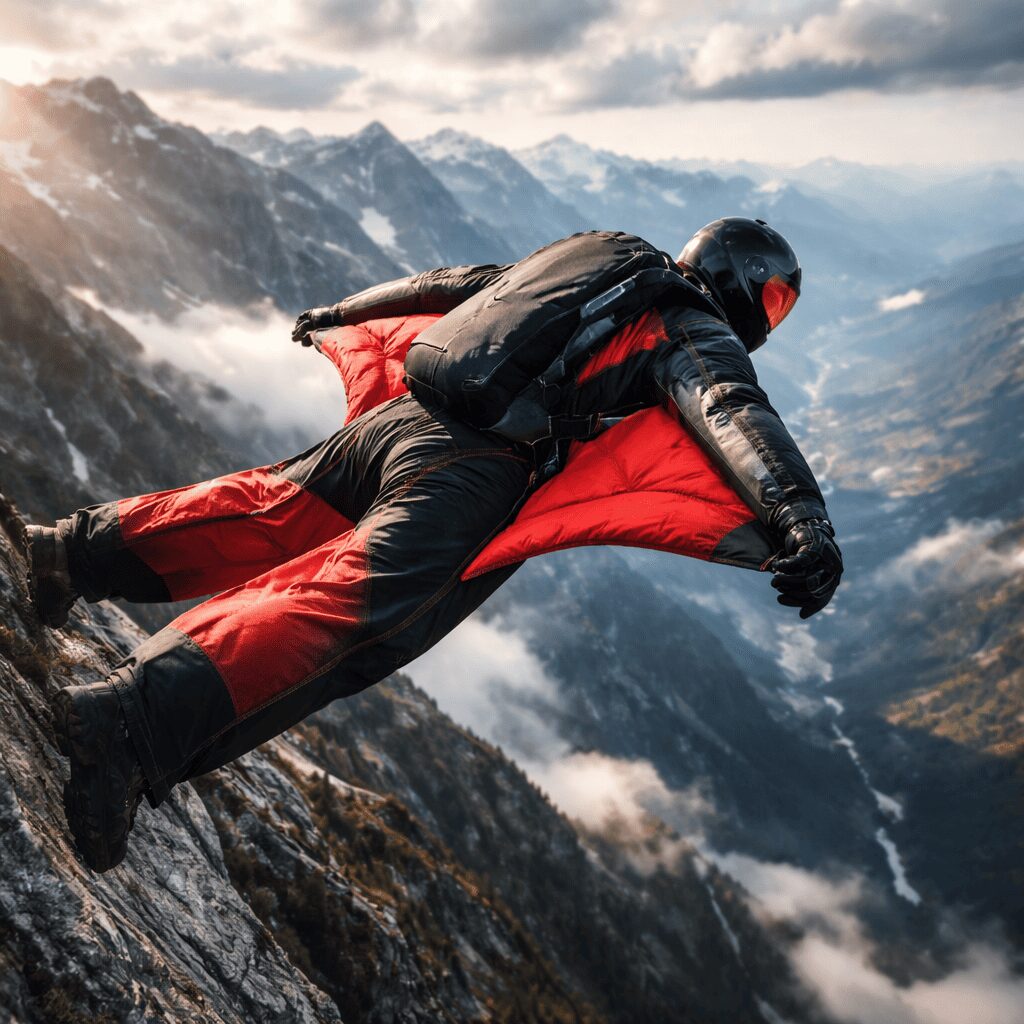 Вингсьют, BASE и реактивные костюмы относятся к верхнему уровню опасности. Вингсьют‑BASE и proximity добавляют к риску свободного падения близость рельефа и малые высоты для раскрытия купола. Реактивные костюмы несут технические риски: отказ двигателя, пожар, потеря ориентации при высокой скорости.