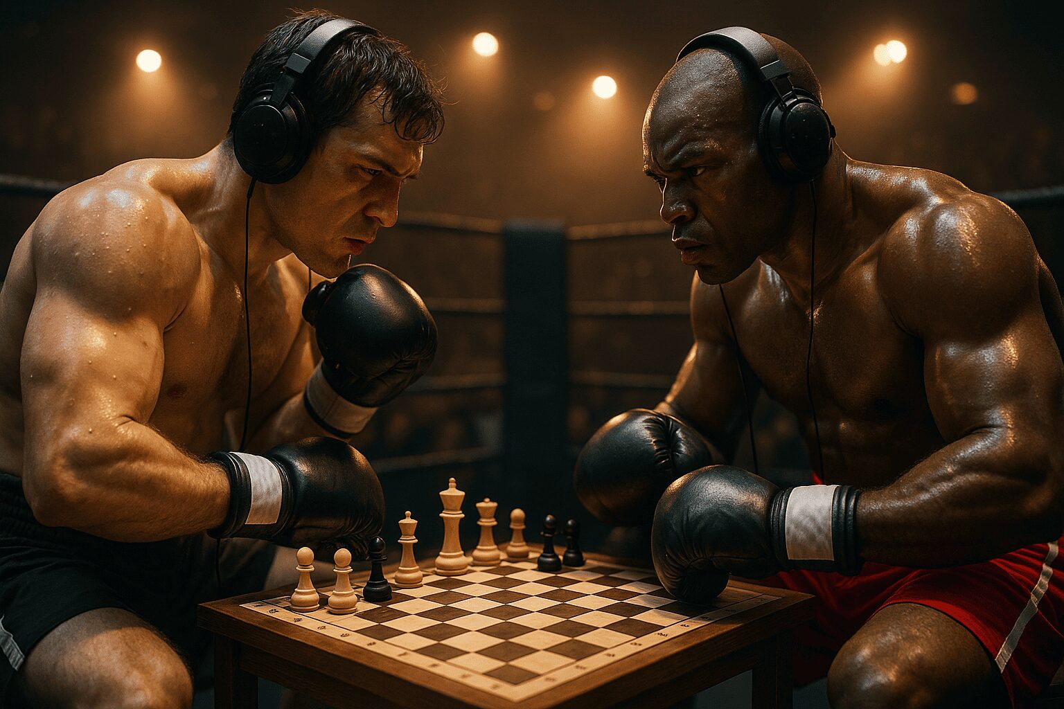 К концу поединка усталость накапливается: руки тяжелые, пульс высокий, но нужно считать варианты, не зевнуть мат и не забыть про время. Любая ошибка в ринге или в позиции может сразу завершить бой, поэтому спортсмен постоянно переключает внимание между тактикой ударов и планом в шахматах.