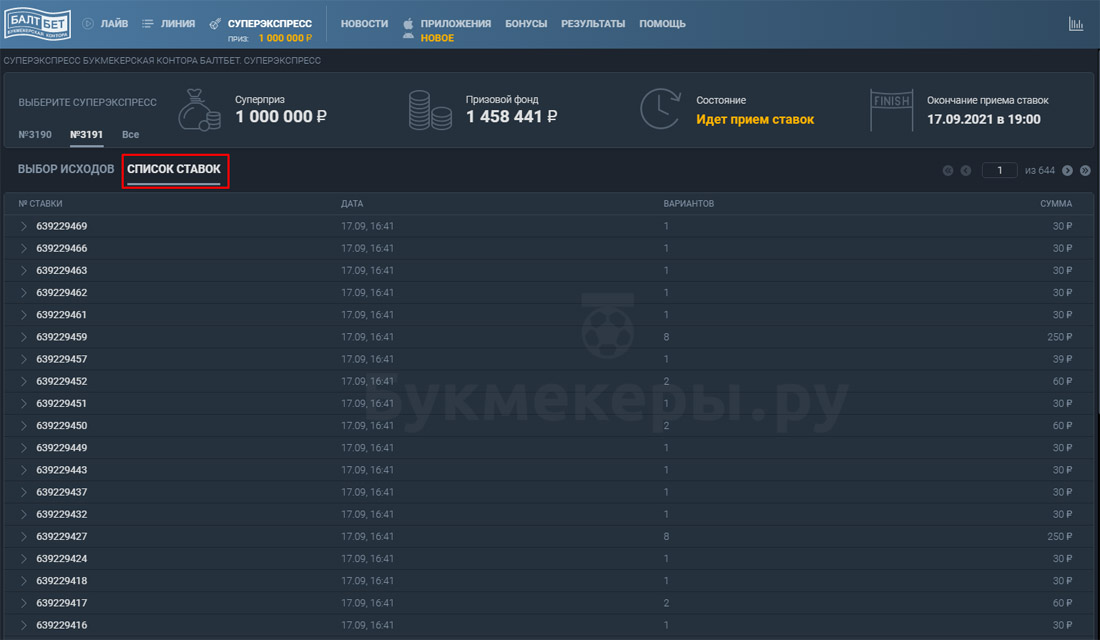 Суперэкспресс в БК Балтбет – ежедневный тотализатор, в котором разыгрывался не только призовой фонд, но и крупный джекпот.